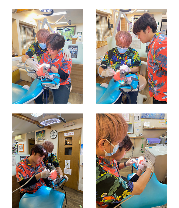 6月は鶴見大学歯学部の学生さんが見学に来られています。ローテーションで4年生と5年生が二人一組となり、日頃、大学での講義や模型実習で勉強していることなどを実際の臨床現場を通し、患者さんとのコミニュケーションを交えながら学んでもらいました。将来有望な歯科医を目指し、真剣に学ぶ姿勢に我々スタッフも先輩として気が引き締まる思います。